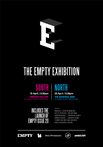 “Australia’s cult art magazine announces The Empty Exhibition, a group show to celebrate the launch of the 20th Issue of Empty magazine.