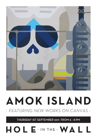 Combining design, graffiti and nature in to his works Amok creates intricate pieces on canvas. Join the artist and hit to celebrate the open of this exhibition A limited edition screen print will be available on the night.”