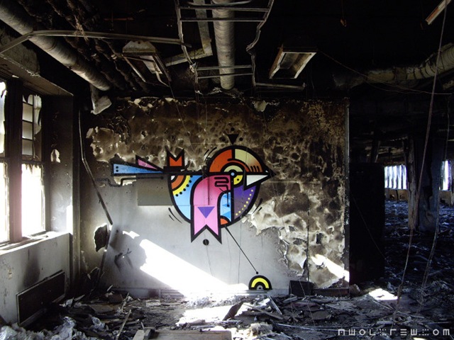 Derelict abandoned spaces would have to be one of the most inspiring environments for painting and I think I can speak for the whole crew in saying this. These spaces offer adventure, freedom and endless opportunities for interacting with the architecture of a space. I really think that the future of graffiti is in its ability to utilize and interact with three dimensional spaces and environments. Most of my urban adventures have been in finding, entering and exiting these spaces.