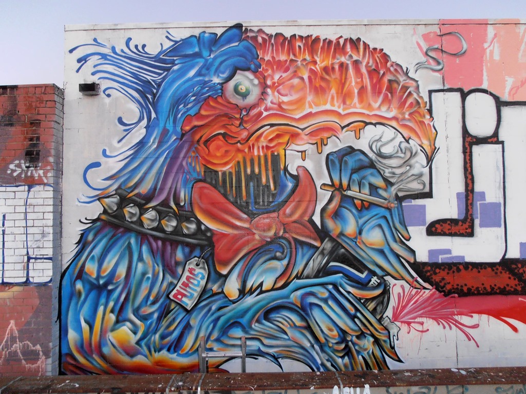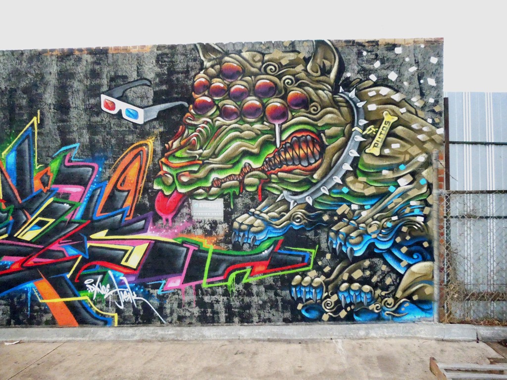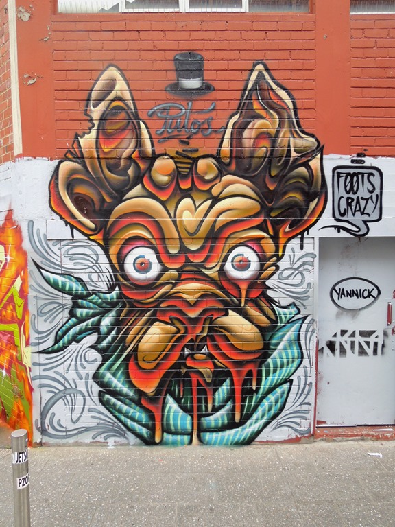 Putos most certainly has a style all his own – a culmination of years of infusing graffiti styles with modern pop cultural icons such as cartoons and anime, with a heavy dose of his own fantastical beastiary. I unashamedly devour every new piece from Putos, his work is just in that vein of “shit that does it” for me. His imagination touches on my own personal love of the weird and wonderful, and his can skills are more than worthy of admiration.